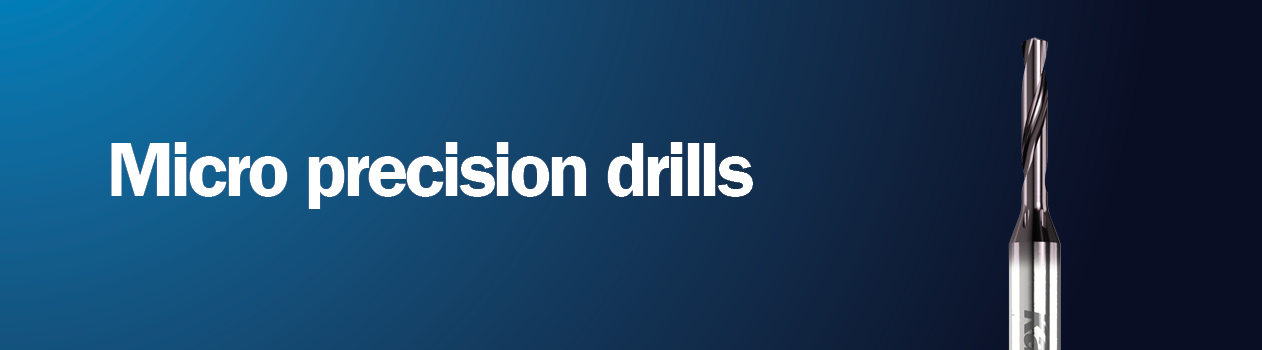 Micro precision-drills made of solid carbide for the production of holes between 0.5 mm and 3.0 mm with hole depths 3xD to 12xD. Available with both external shank cooling via six cooling channels and internal shank cooling via two twisted cooling channels. The standard drill tolerance of m7 enables the production of holes with a hole quality of H9 under normal conditions.